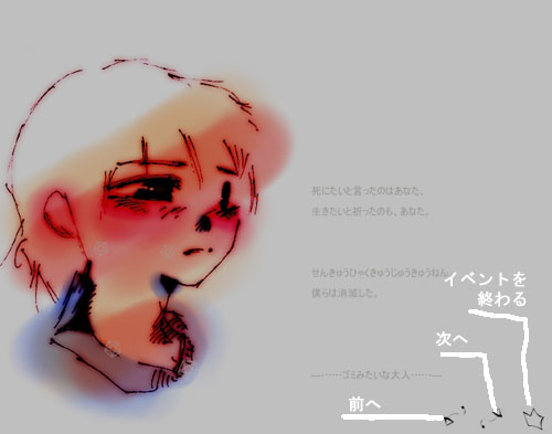 2023.08.04 Flash版をそのまま動くようにしたものを公開 2005.06.13 シナリオ大幅変更。絵追加。 エンディング微妙に変更。 2005.06.07 少しバージョンアップ。 ダウンロード版一時停止。 2005.04.02 ダウンロード版公開。 2005.03.27 ネットバージョン完成。 2005.03.25 企画ページアップ。近日完成予定。