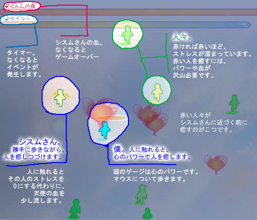 天使をかばって、生きるゲーム。 心のぱわーで、 人々を愛してあげよう。