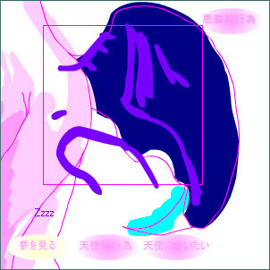 | 「夢を見る」 | 天使の夢を見ます、悲しみがあがって、はねが青く染まります |