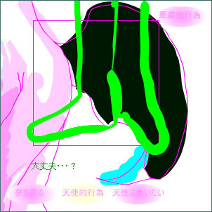 | 「悪魔的行為」 | 悪いことをします、染まったはねが、もどって黒くなります |