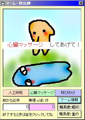 あ!誰か倒れてる!! 大変だ!心臓が止まってる! 出番だマームー!! 救出劇のはじまりだ!!