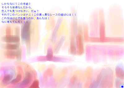 ●イベントが開始されたら、 クリックして、次に進ませましょう。 ずっとマウスを押したままにすると、 イベントが早送りになります。 エンディングだとタイトルに戻ってしまうので注意。 それぞれ各キャラ×10本ほどイベントがあります。
