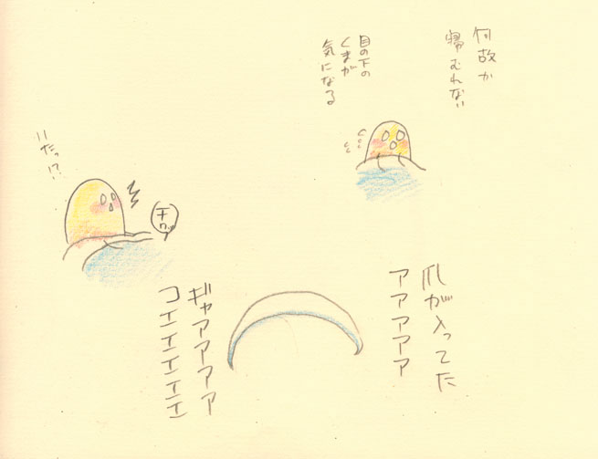 布団の中に爪が入ってた。なんの呪いだ。