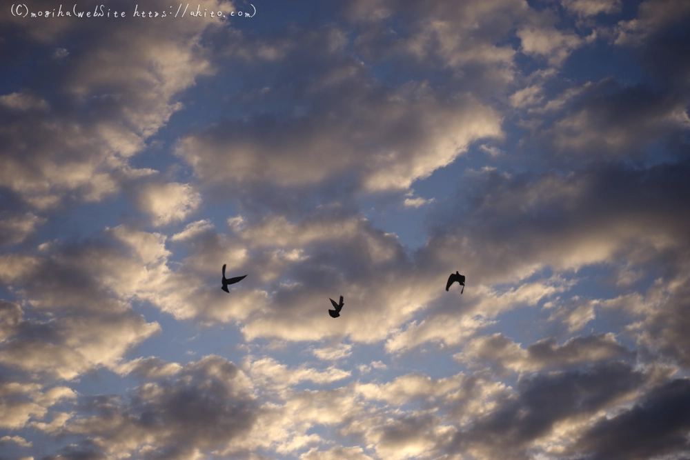 朝焼けと三羽の鳥