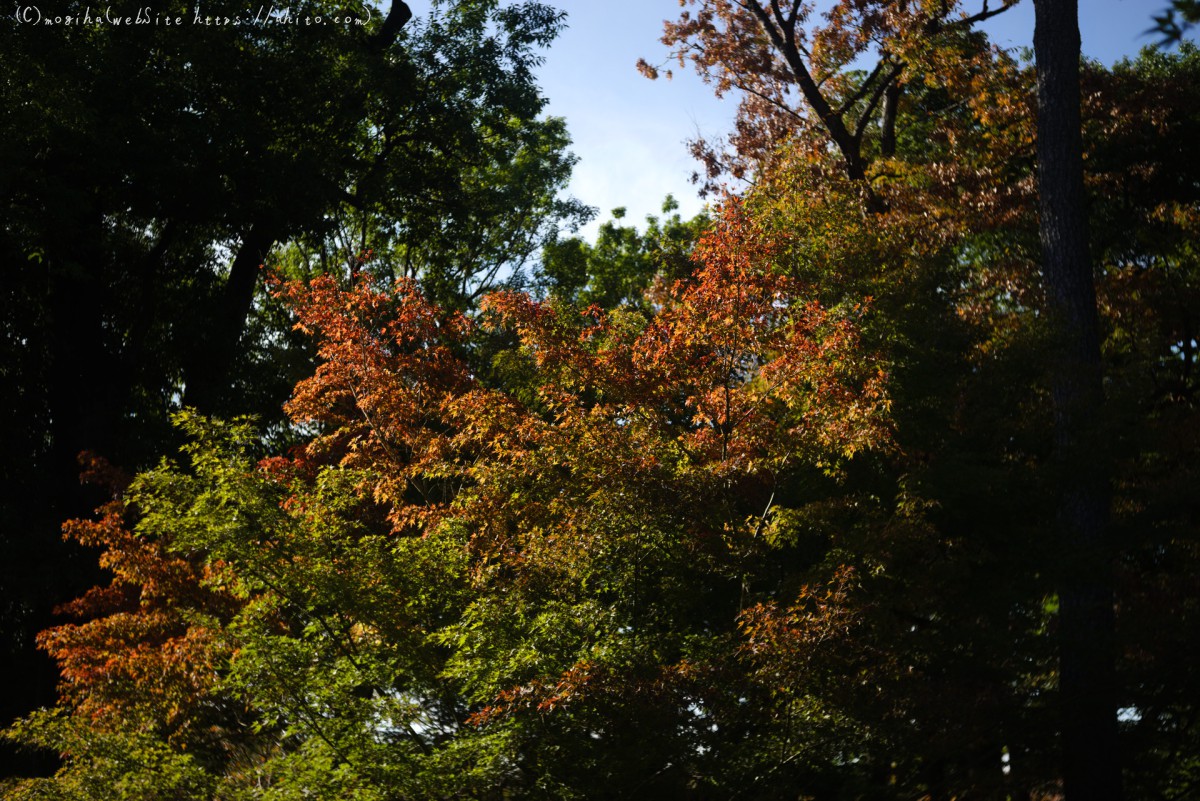 紅葉が光にあてられて