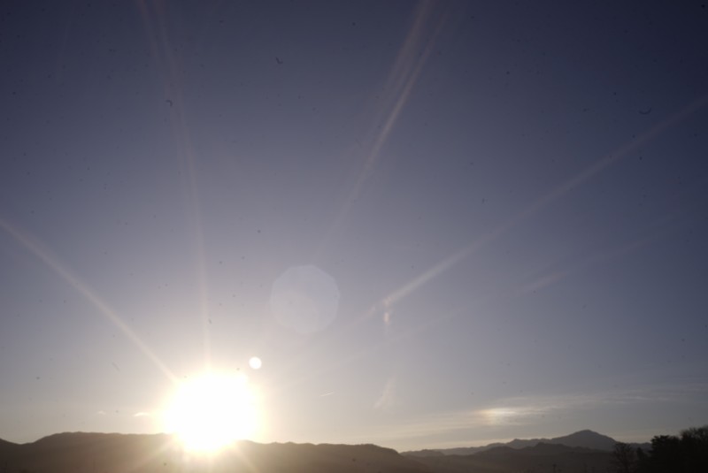 朝日は少し桃色がかった茜色